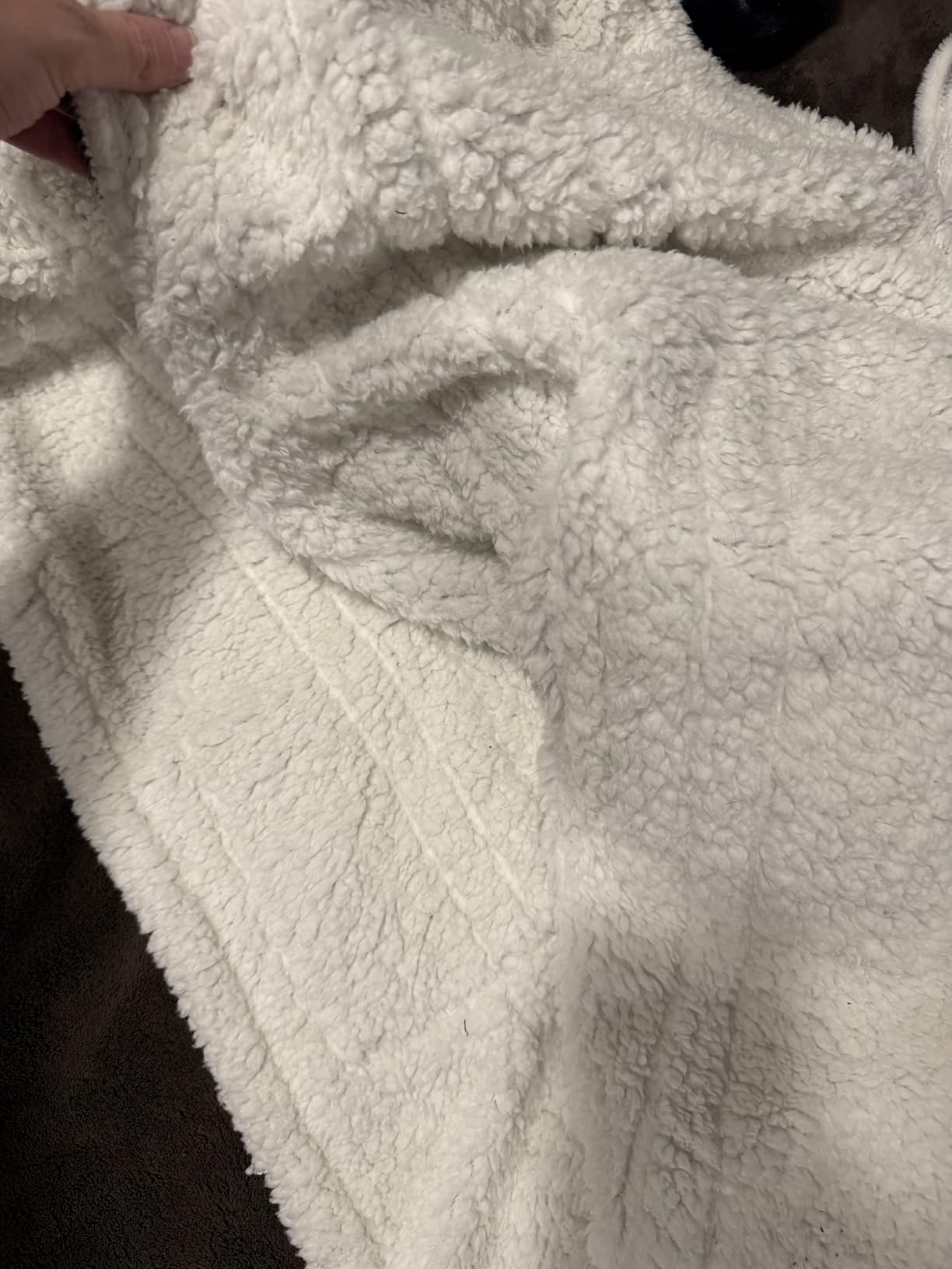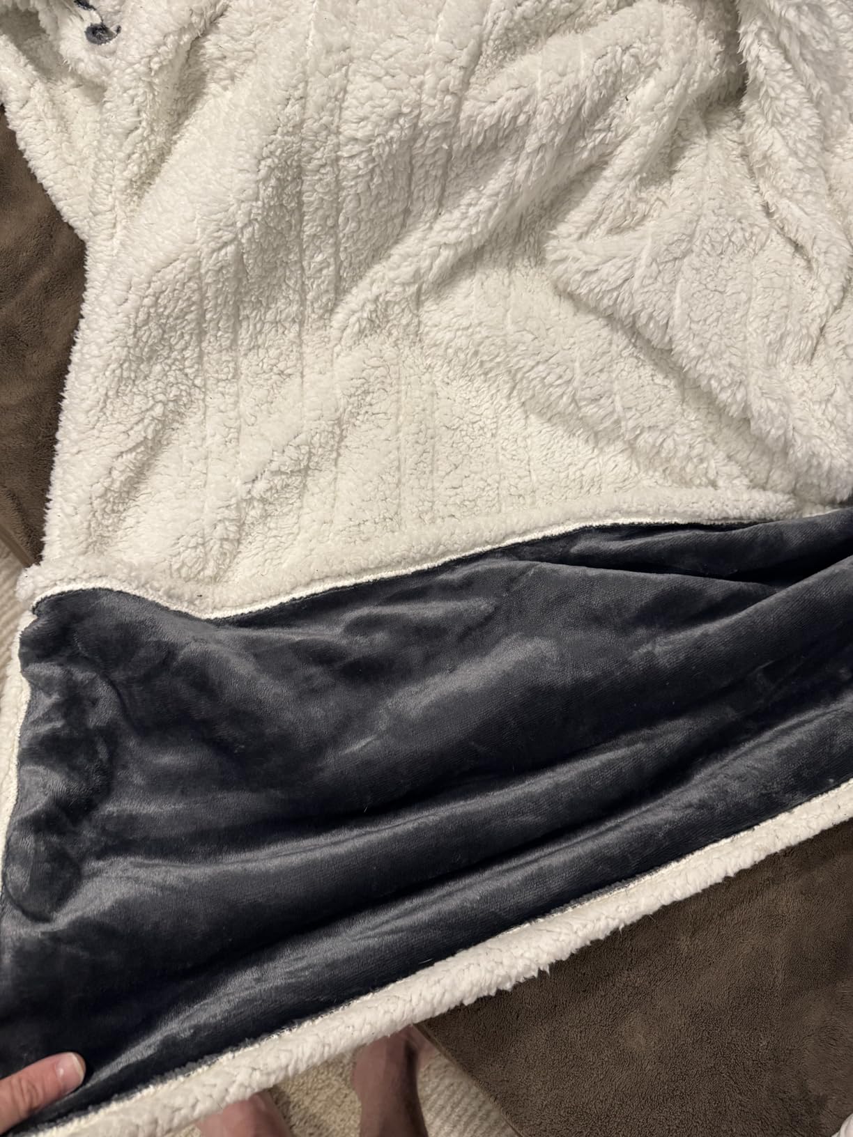 This heated robe is hands-down one of the coziest things I’ve ever owned. Even without turning on the heat, the robe itself is made of thick, heavy materials that keep you warm. The outside is a soft fleece, and the inside is lined with plush Sherpa, so it feels like wrapping yourself in a warm cloud.