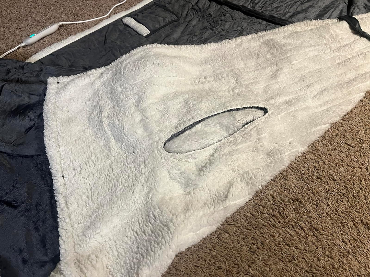This heated blanket is perfect for staying warm and comfortable during the colder months. With built-in arm sleeves and foot pockets, it’s easy to snuggle into while still being able to use your hands freely. The fabric is soft both inside and out, making it extra inviting whether you’re lounging on the couch or wearing it like a robe. It’s especially convenient to wear backwards so you can keep warm while still moving your arms with ease.